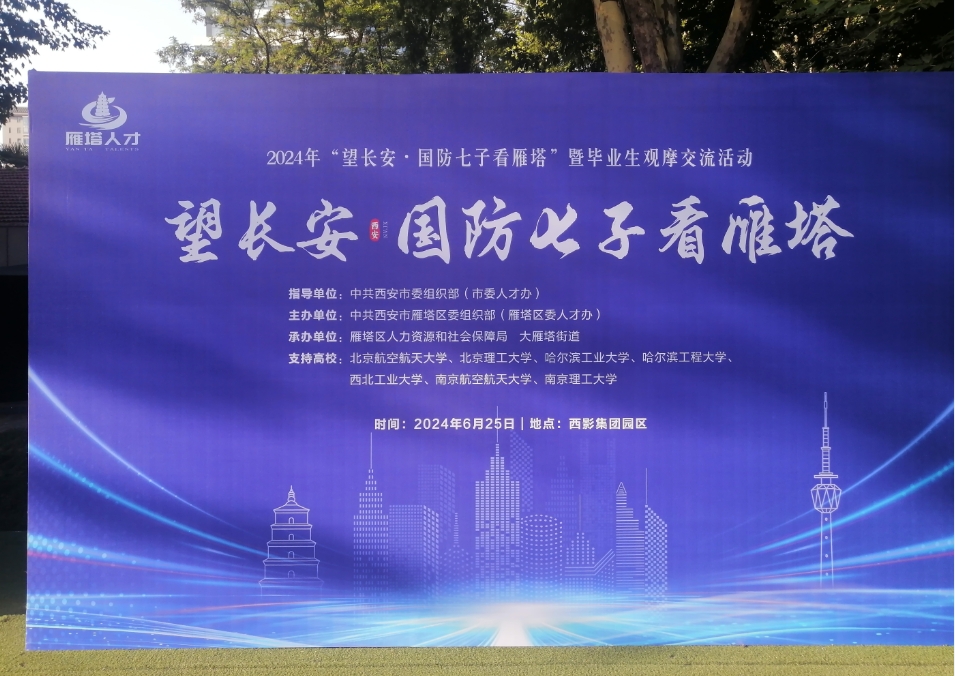 2024年6月25日,我司參加了在西安市雁塔區(qū)舉辦的“望長安——國防七子看雁塔” 暨畢業(yè)生觀摩交流活動。本次活動由中共西安雁塔區(qū)委組織部主辦,吸引了來自“國防七子”(北京航空航天大學(xué)、北京理工大學(xué)、哈爾濱工業(yè)大學(xué)、哈爾濱工程大學(xué)、西北工業(yè)大學(xué)、南京航空航天大學(xué)、南京理工大學(xué))的優(yōu)秀學(xué)子,場面熱烈,互動積極。